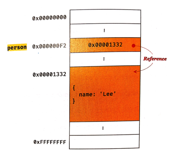 참조 값을 변수에 할당하면 변수를 선언할 때 확보한 메모리 공간에는 참조 값이 저장 된다.