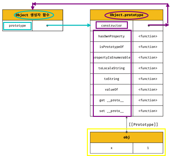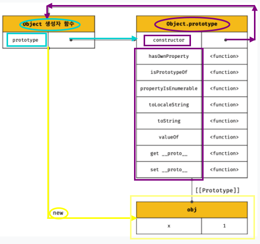 이 때, 전달되는 프로토타입은 object.prototype이다.const obj = new Object(); obj.x = 1;